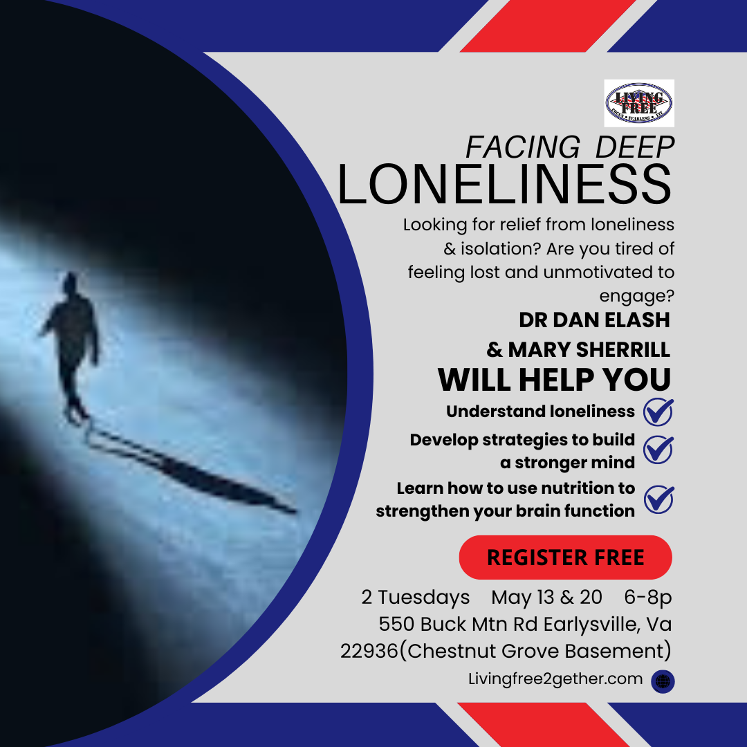 For 2 weeks, Dr Dan Elash and MarySherrill will share their expertise and encourage YOU to build the skills necessary to understand loneliness better, strengthen your brain to face it, and leverage your nutrition to support that stronger brain function.
